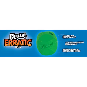 Chuckit! Erratic Ball is a durable geometrically shaped rubber ball that bounces erratically to keep the game interesting and challenging for dogs.