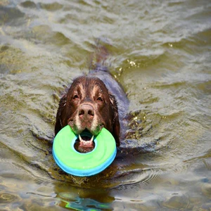 It’s durable, pliable, and it floats! The lightweight is perfect for an easy catch that is easy on dogs’ mouths. Floats through the air for fast flight! Unsinkable and floats high on the water. Soft rugged construction is easy to clean. Great for the backyard or the water. Bright colour gives increased visibility and helps to prevent the toy from getting lost. The aerodynamic shape is perfect for long distance games of fetch.