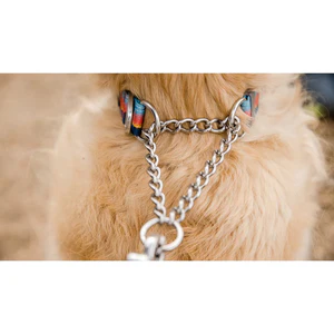 The Chain Reaction Collar is a martingale collar with chain. It combines reflective Tubelok™ webbing and a short section of stainless steel chain.